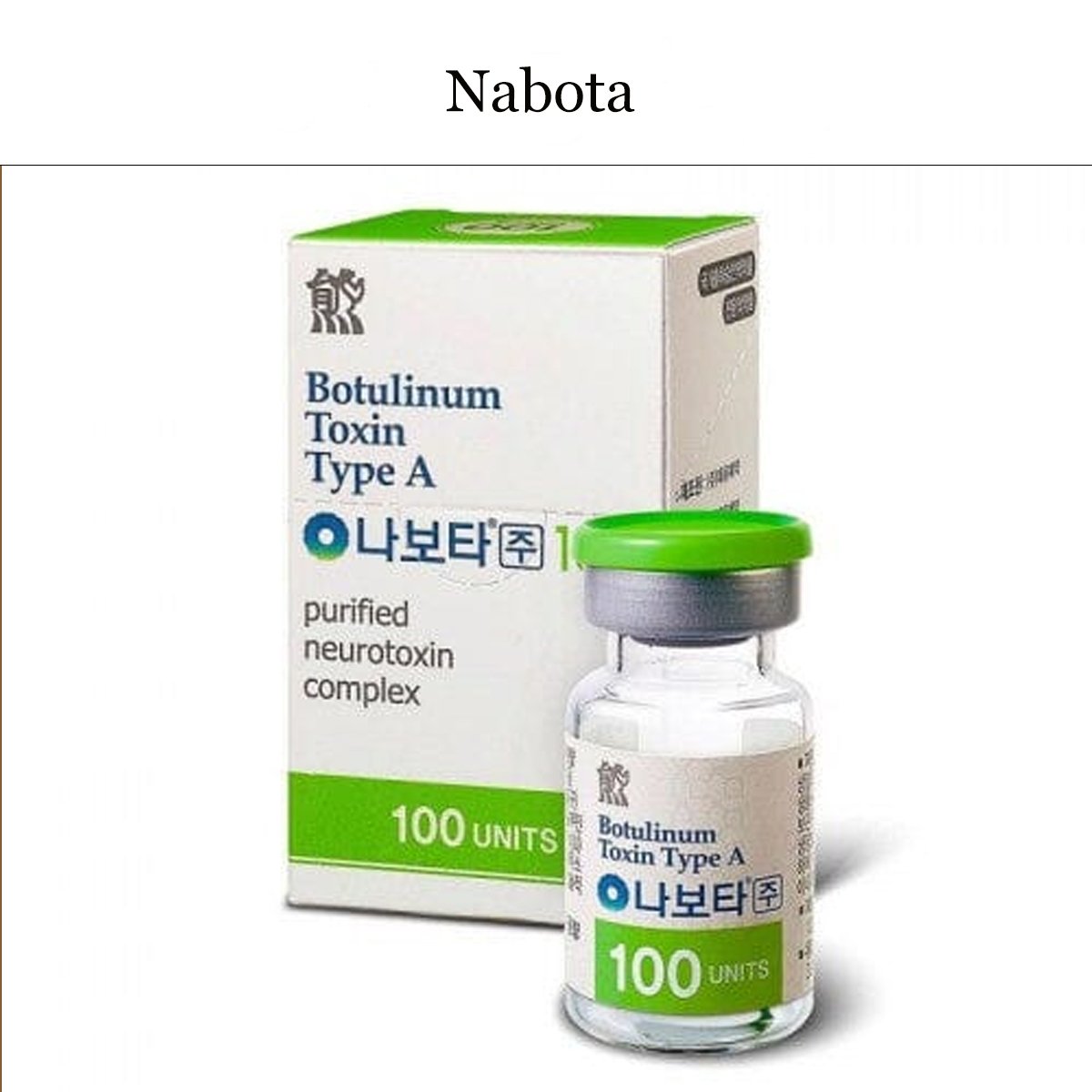 Botox Nabota là dòng botox xuất xứ từ Hàn Quốc có thành phần chính là botulinum type A với độ tinh khiết cao. Tác động ức chế truyền tín hiệu giữa các cơ và dây thần kinh giúp kiểm soát lão hóa và các nếp nhăn. Sản phẩm có hiệu quả tốt và an toàn được nhiều Bác sĩ và phòng khám tin dùng.